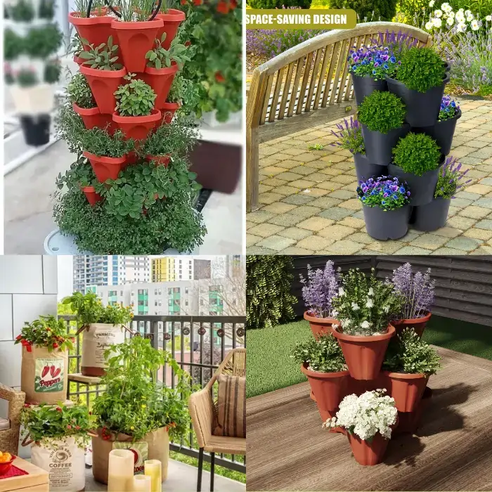 For growing many plants in one place‚ stackable pots are used‚ where several pots are placed on each other․